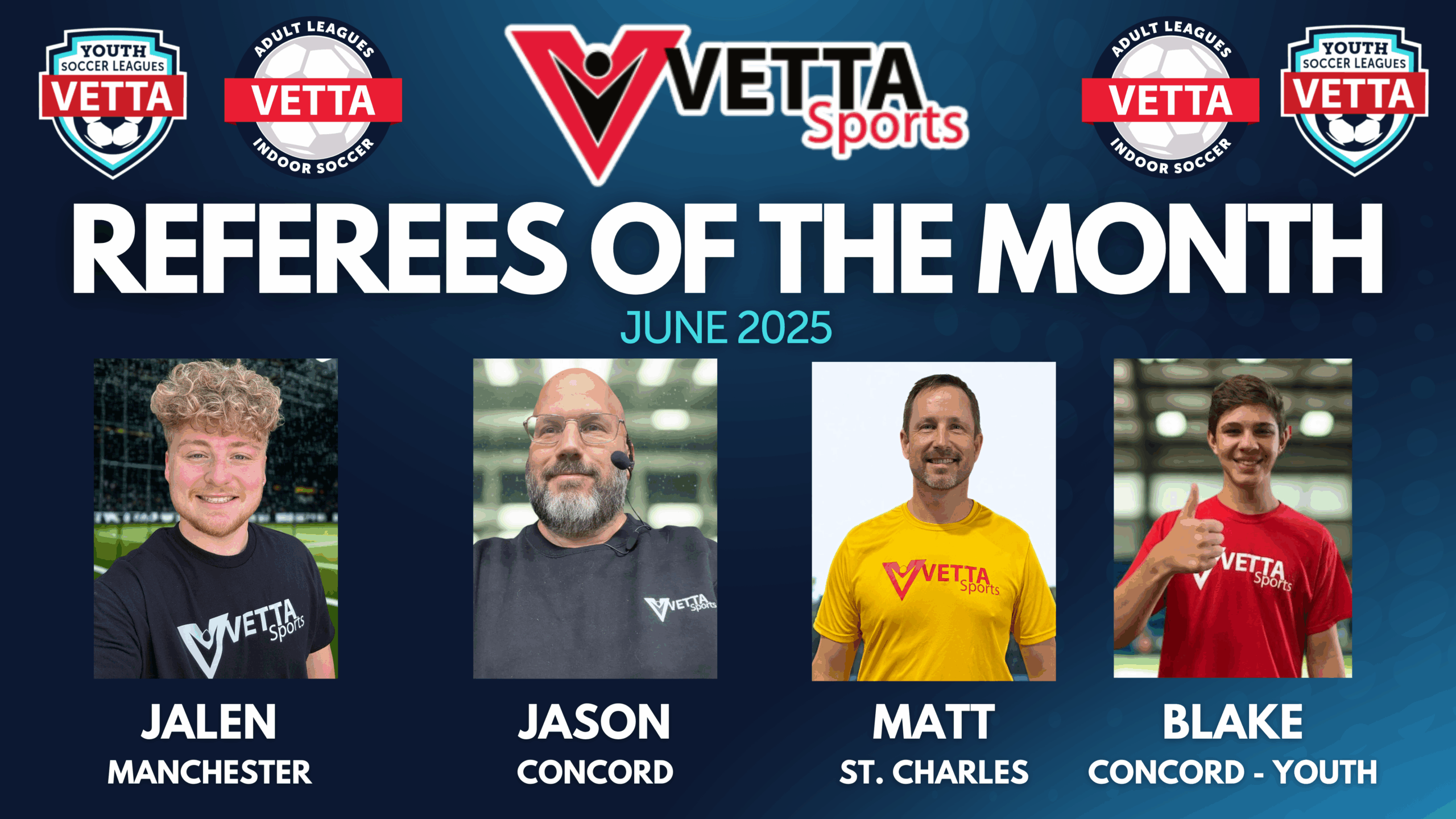 To all our June honorees — thank you for your dedication, leadership, and commitment to creating the best possible experience for our players. We’re lucky to have you on Team Vetta! #RefereeAppreciation #Sportsmanship