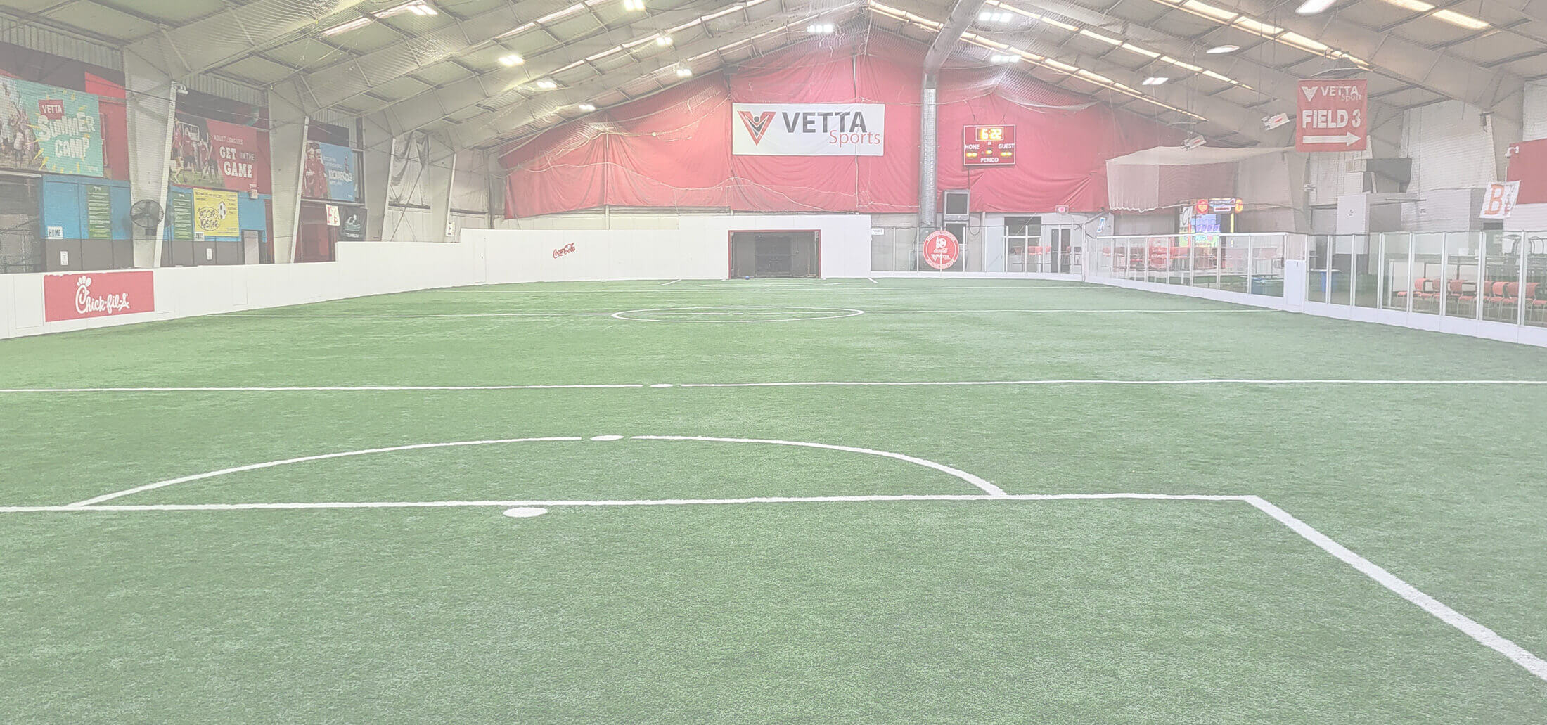 Our complex in Concord includes multiple buildings that house both our turf soccer fields and racquet sports courts. (To view our Racquet Sports building, click here.) This facility has three boarded turf fields, with plenty of space for spectators to watch the action!