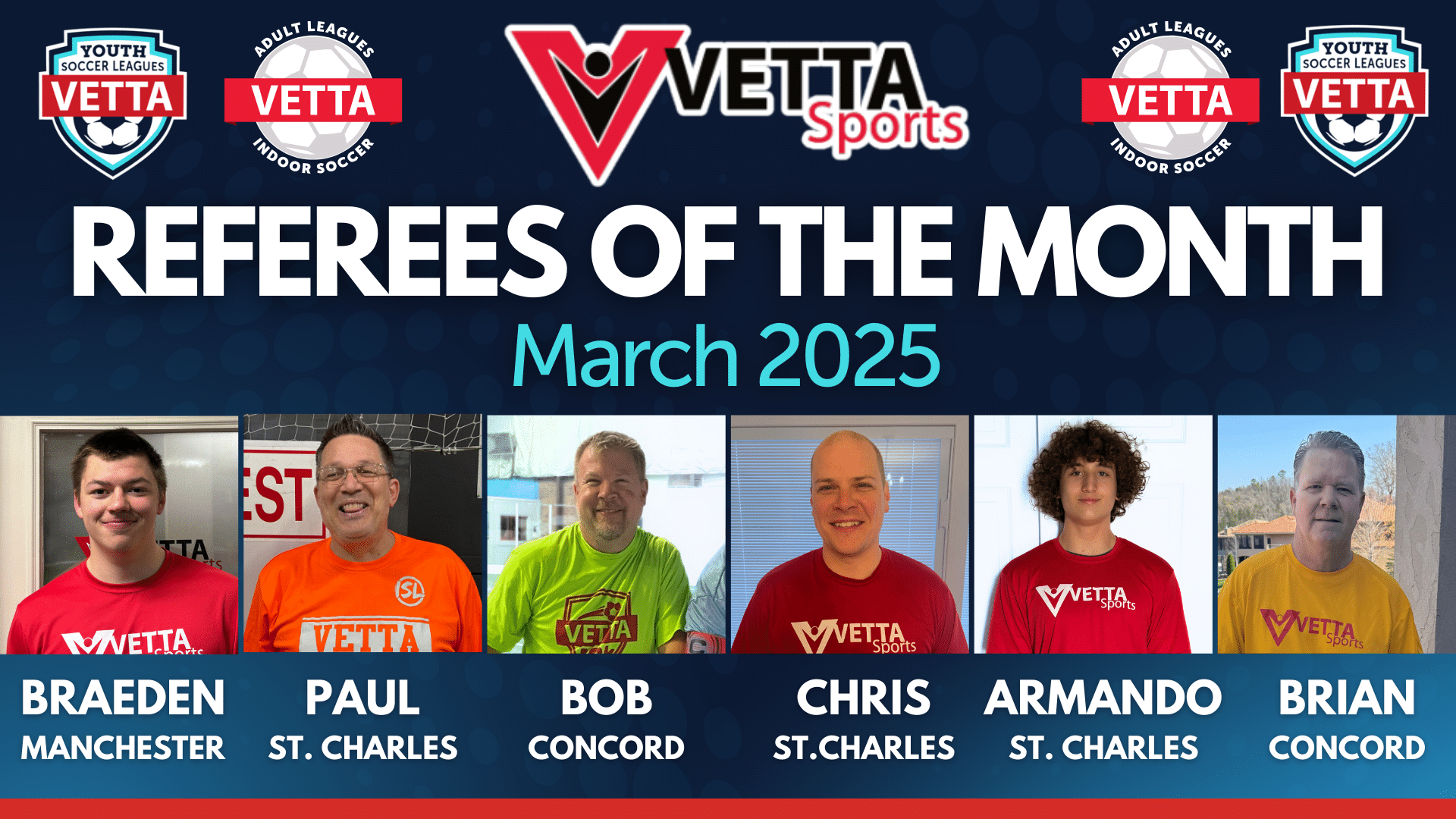 Let’s give a big round of applause to our Referees of the Month for March! 🏅 These standout officials have gone above and beyond—bringing reliability, energy, and the Vetta Way to every match they cover. Please take a moment to recognize and thank them when you see them at your facility!
